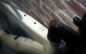 Thus was born the Guava Spot - Volata X Aniversario. This is our Guava Spot frame, with a limited edition paint and build. The first thing you notice is the X design. Volata's designer Enric Adell placed holographic Xs around the frame. Additional details like rainbow-anodised bolts, custom through axles, a very special rainbow titanium top cap - details to discover. And in the spirit of a printed magazine - analog shifting provided by Shimano GRX.